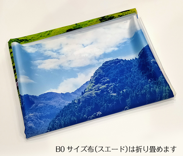 B0布(スエード)は昇華転写方式。折りたためます。